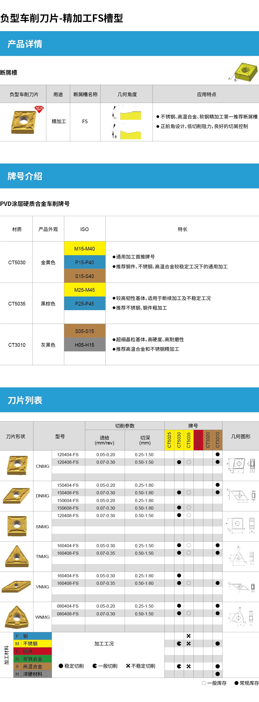 負(fù)型車削刀片-精加工FS槽型